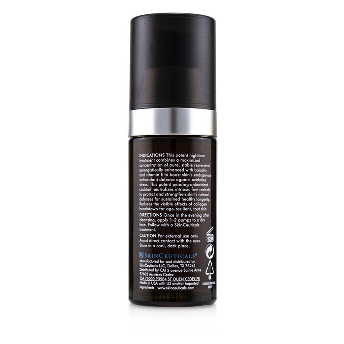 An antioxidant-packed, rejuvenating night concentrate Contains a maximized concentration of 1% pure, stable resveratrol Rich in antioxidant to neutralize age-accelerating internal free radicals Fortified with 0.5% baicalin & 1% alpha tocopherol (vitamin E) Helps consolidate skin's own antioxidant defense system to promote its natural nightly repair Skin appears denser, brighter, more elastic & younger looking
