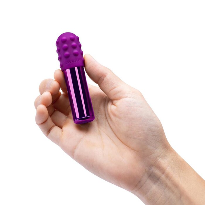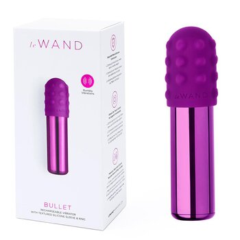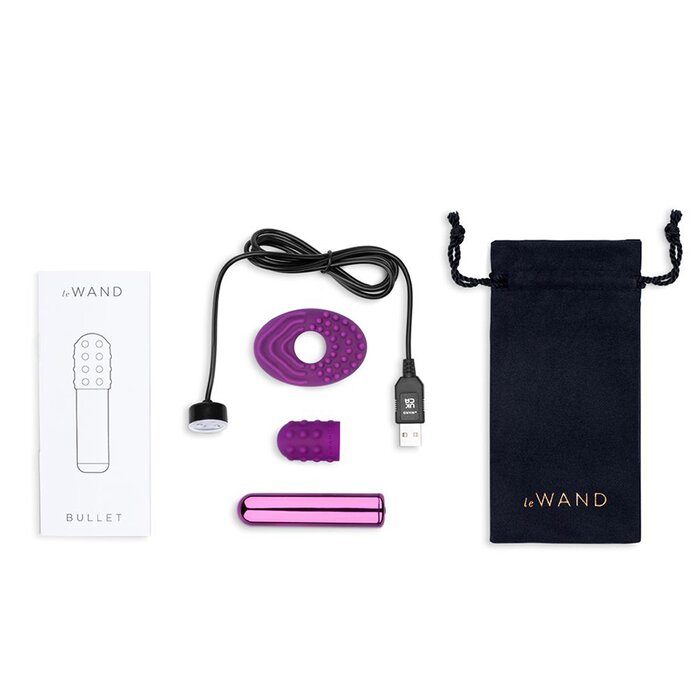 Perfect for beginners, Le Wand Bullet is a cute & tiny vibe that's deceptive but packs enough power to throw you over the edge. Elegant and easy-to-use, the Bullet has accessible one-touch controls at the bottom of its rounded frame while also being fully encased in body-safe metal. This rechargeable Le Wand Bullet mini vibrator comes with a removable textured silicone sleeve for added pleasure. Place them in their velvet travel case and make them a fun part of what you carry in that tote bag every day. WARNING: Keep the product away from children. DO NOT expose the product or the charging device to humid places, direct UV or sunlight for an extended period. NEVER immerse or rinse the charging device in water or other fluids. If your toy appears to function abnormally, turn it off. Product is a reuseable after wash. DO NOT use this product with more than one person. DO NOT place any object inside the cup for use. Safety Precautions: Always clean the product before and after use. We recommend using water-based lube with your toy.