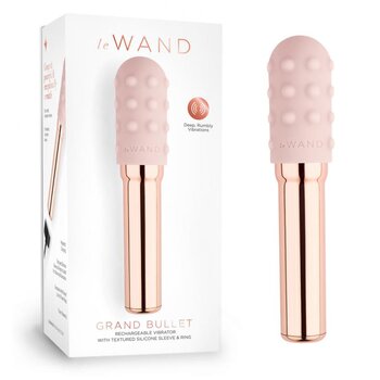 Take your pleasure anywhere with the Le Wand Grand Bullet. The powerful, portable, and adaptable size is perfect for a full range of situations. Use the Grand Bullet vibe for a quickie, as a tool to fall asleep on restless nights, or for a little added -oomph- to partnered sex. The included removable textured silicone sleeve and silicone ring provide more ways to enjoy and experience pleasure. Grand Bullet comes complete with travel lock, LED charging indicator, and micro-suede travel pouch for discreet storage. WARNING: Keep the product away from children. DO NOT expose the product or the charging device to humid places, direct UV or sunlight for an extended period. NEVER immerse or rinse the charging device in water or other fluids. If your toy appears to function abnormally, turn it off. Product is a reuseable after wash. DO NOT use this product with more than one person. DO NOT place any object inside the cup for use. Safety Precautions: Always clean the product before and after use. We recommend using water-based lube with your toy.