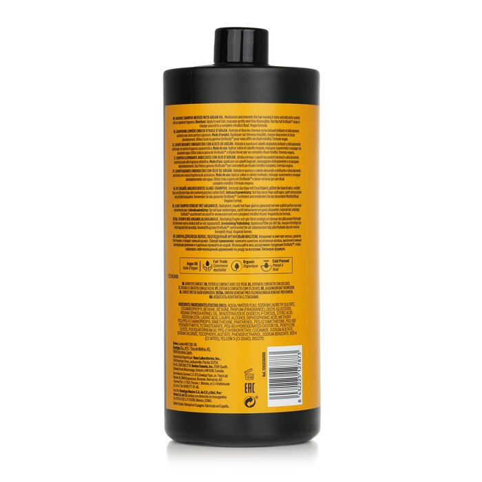 A vegan, moisturizing & smoothing shampoo that adds long-lasting radiance to hair Features a transparent-golden & enveloping texture Helps maintain scalp's natural moisture & protects from possible discomfort caused by surfactants Infused with organic, fair trade & cold-pressed Argan Oil to soften, hydrate & restore hair’s natural luster Scented with the Orofluido TM Radiance Shampoo Fragrance to awaken a wellbeing sensation, boost relaxation & improve self-confidence & positivity Leaves hair looking shiny & healthy Prefect for all hair types & safe for colour-treated hair Vegan formula