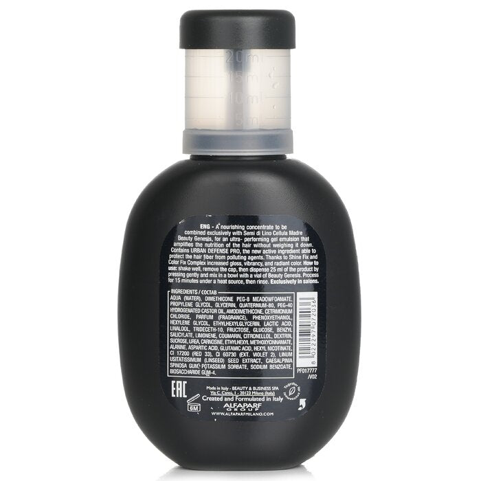 A lightweight nourishing concentrate for dry hair Should be used in conjunction with Semi di Lino Cellula Madre Beauty Genesis Helps amplify the nutrition of hair without weighing it down Rich in Argan stem cells to intensively nourish hair Harnesses Urban Defence Pro technology to protect hair from environmental pollution Contains a Color Fix complex to prolong hair color shield from fading Infused with Shine Fix complex to illuminate hair for up to 24 hours Unveils shinier, bouncier healthier-looking hair