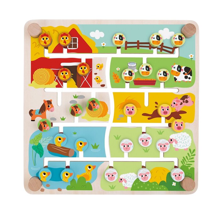 Learning & Developmental Activity & Educational Preschool Toy - Alphabet & Farm Maze The wooden maze and sorting set from Tooky Toy is a wonderful educational tool that provides hours of entertainment for young children! The set includes two sides of the puzzle, each with its own unique challenge. On one side, children can practice their sorting and matching skills by matching farm animals to their corresponding pens and stables along the maze. This can be a fun and interactive way for children to learn about colours, patterns and animal habitats. The counting and adding exercises that can be done with this puzzle can help develop basic math skills and problem solving abilities. On the other side, children can practice their alphabet and spelling skills by sorting letters from A-Z. This can be a great way for young children to learn the alphabet and to identify letters and their corresponding sounds. The inclusion of animals and objects that start with each letter can help make the learning process more interactive and engaging. Age Recommendation: 3 Years + Contain: Wooden Maze Box x 1, Wooden alphabet from A-Z x 1 set