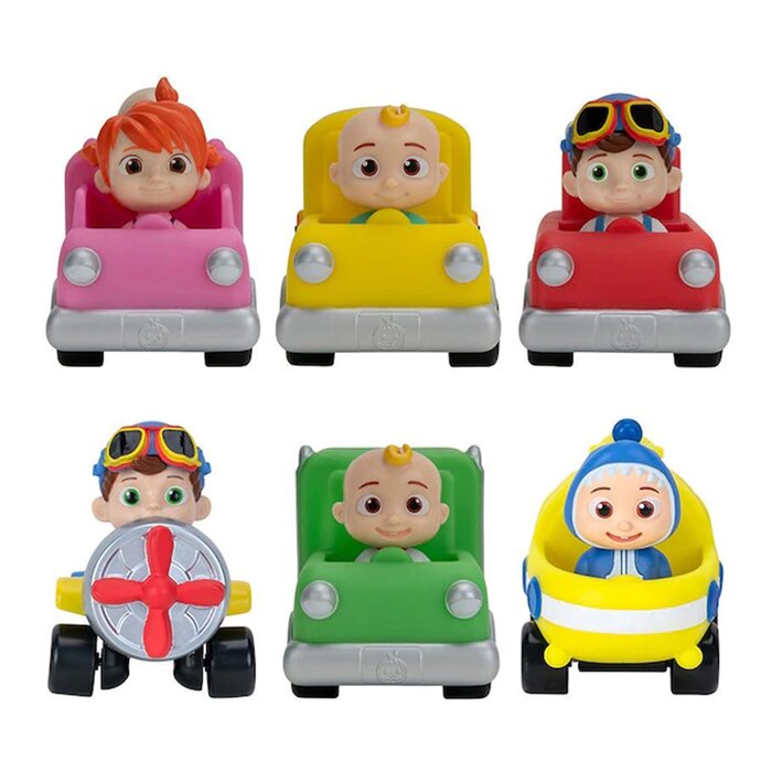 CoComelon Mini Vehicles Plane and Family Set, a collection of toys inspired by the popular and educational CoComelon YouTube videos. The Plane comes with a TomTom figure and allows children to take the vehicle for a spin. The Family Set features popular characters from the show, including JJ, TomTom, and YoYo. The figures in the Family Set are articulated, allowing children to move each figure's arms, legs, and neck for imaginative play. The CoComelon Mini Vehicles Plane and Family Set can bring every nursery rhyme to life with the CoComelon characters. The CoComelon Mini Vehicles Plane and Family Set are engaging and fun toy collections that can help support children's love for vehicles and imaginative play. It is likely intended for parents and caregivers of young children who are looking for age-appropriate toys that can help promote early motor skills and imaginative play, while also encouraging a love for the popular CoComelon YouTube videos. Recommended age: 2 years +