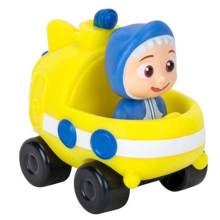 CoComelon Mini Vehicles Submarine and Family Set, a collection of toys inspired by the popular and educational CoComelon YouTube videos. The Submarine comes with a JJ figure and allows children to take the vehicle for a spin. The Family Set features popular characters from the show, including JJ, TomTom, and YoYo. The figures in the Family Set are articulated, allowing children to move each figure's arms, legs, and neck for imaginative play. The CoComelon Mini Vehicles Submarine and Family Set can bring every nursery rhyme to life with the CoComelon characters. The CoComelon Mini Vehicles Submarine and Family Set are engaging and fun toy collections that can help support children's love for vehicles and imaginative play. It is likely intended for parents and caregivers of young children who are looking for age-appropriate toys that can help promote early motor skills and imaginative play, while also encouraging a love for the popular CoComelon YouTube videos. Recommended age: 2 years +