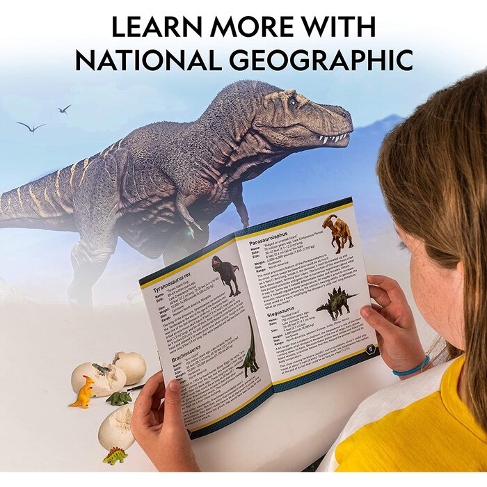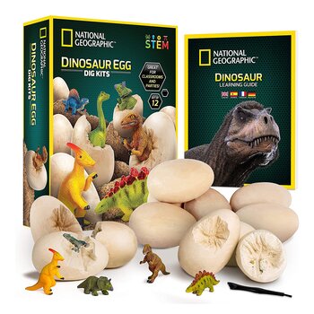 DIG UP PREHISTORIC FOSSILS – These genuine fossils are millions of years old! Dig for dinosaurs, sharks, brachiopods, mosasaurs, ammonites, and more. This Mega Fossil Dig Kit is one of our top learning toys, providing hours of educational fun, and helping to inspire a lifelong love of learning! EXPLORE PALEONTOLOGY – Excavate incredible, real fossils using the included tools of the trade: a chisel, brush, and magnifying glass. This kit makes an excellent STEM gift for boys and girls! 16-PAGE LEARNING GUIDE - This full color, detailed learning guide illustrates how fossils are formed and helps young scientists identify each specimen as it’s discovered. National Geographic educational toys make science and learning fun and are the perfect STEM activity for kids! A COMPLETE LEARNING ACTIVITY – this Mega Dig Kit includes everything you need to keep kids digging and learning for hours, including a dig brick packed with dinosaur fossils, a chisel, a brush, and a magnifying glass to inspect these amazing specimens! HIGH-QUALITY EDUCATIONAL TOYS - We're proud to make the highest quality hands-on science toys, and all our products are backed by exceptional service. If your experience is less than stellar, let us know and we'll make things right!