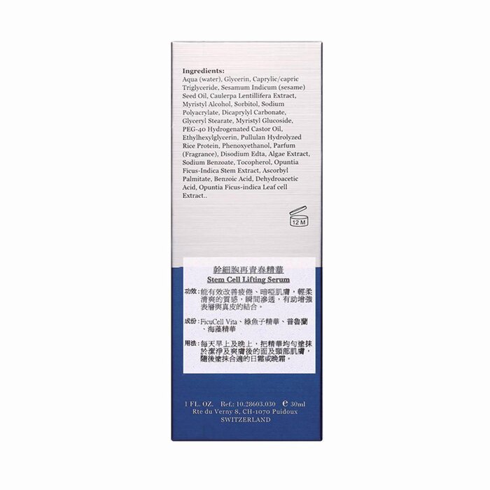 ELEMONT - Stem Cell Lifting Serum (Moisturising, Anti-Wrinkling, Anti-Aging,Firming) (e30ml) E603  It is formulated with our exclusive FicuCell Vita, it helps extend cellular longevity and defend the skin from premature aging. With the Green Caviar Extract (or sea grape), a novel anti-aging active that strengthens the dermal-epidermal junction (DEJ) and the dermis, helping improve skin moisturization, replenish skin volume and restore a youthful appearance.