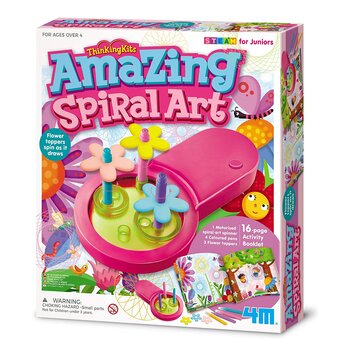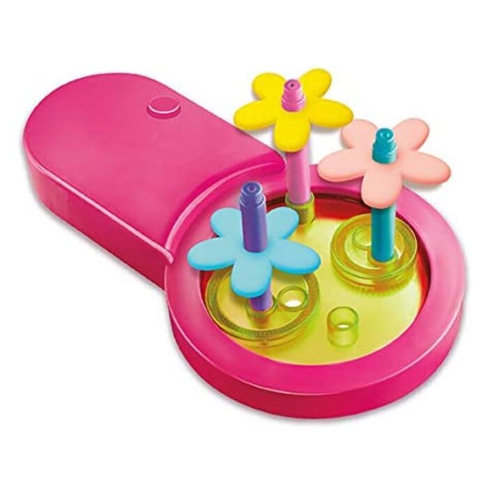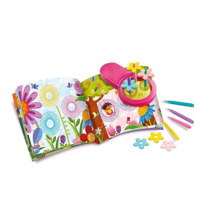 Flower toppers spin as it draws. Use spiral art spinner to complete the activity booklet.